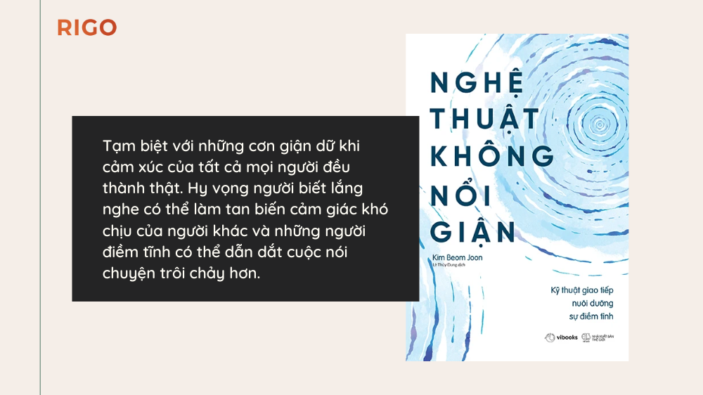 Khi viết về chủ đề này, tác giả Kim Beom Joon đã ví hậu quả của cơn phẫn nộ còn bùng nổ dữ dội hơn cả pháo hoa, sự tức giận trong một khoảnh khắc cũng có thể đốt cháy lời nói và tâm hồn người khác thành một đống tro tàn, thiêu rụi tất cả những gì ta từng dày công xây đắp. Và chính bạn – người bị mắc kẹt bởi những cơn giận bốc đồng của chính mình – đang phải loay hoay nghĩ cách giải quyết hậu quả của lời nói tiêu cực với những mối quan hệ đang đi đến bờ vực. Vậy thì hãy để “Nghệ thuật không nổi giận” của tác giả Kim Beom Joon giúp bạn thức tỉnh, luyện tập và sửa chữa.