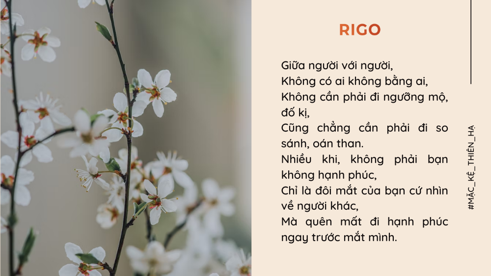 Sống mỗi ngày thật bình thản và nhẹ nhõm, trải qua một đời không hối tiếc.