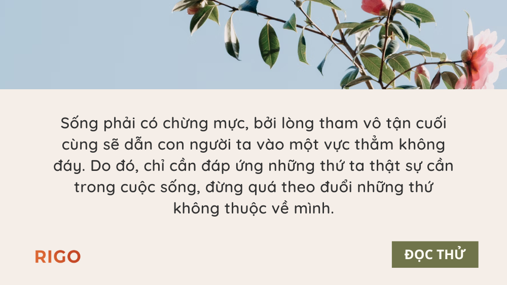 Sống phải có chừng mực, bởi lòng tham vô tận cuối cùng sẽ dẫn con người ta vào một vực thẳm không đáy. Do đó, chỉ cần đáp ứng những thứ ta thật sự cần trong cuộc sống, đừng quá theo đuổi những thứ không thuộc về mình.