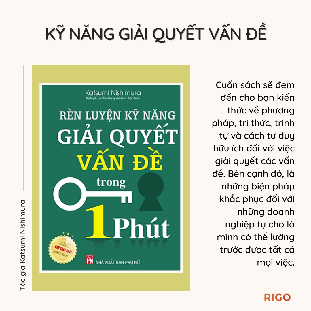 Giải quyết vấn đề luôn là kỹ năng cần thiết và quan trọng đối với bất kỳ cá nhân nào trong các mối quan hệ. Cuốn sách Rèn Luyện Kỹ Năng Giải Quyết Vấn Đề Trong 1 Phút sẽ đem đến cho bạn kiến thức về phương pháp, tri thức, trình tự và cách tư duy hữu ích đối với việc giải quyết các vấn đề. Cùng với việc cung cấp những kiến thức cơ bản, cuốn sách còn có những ví dụ minh họa sinh động có giá trị học hỏi cao. Bên cạnh đó, cuốn sách cũng mang đến rất nhiều biện pháp khắc phục đối với những doanh nghiệp tự cho là mình có thể lường trước được tất cả mọi việc.