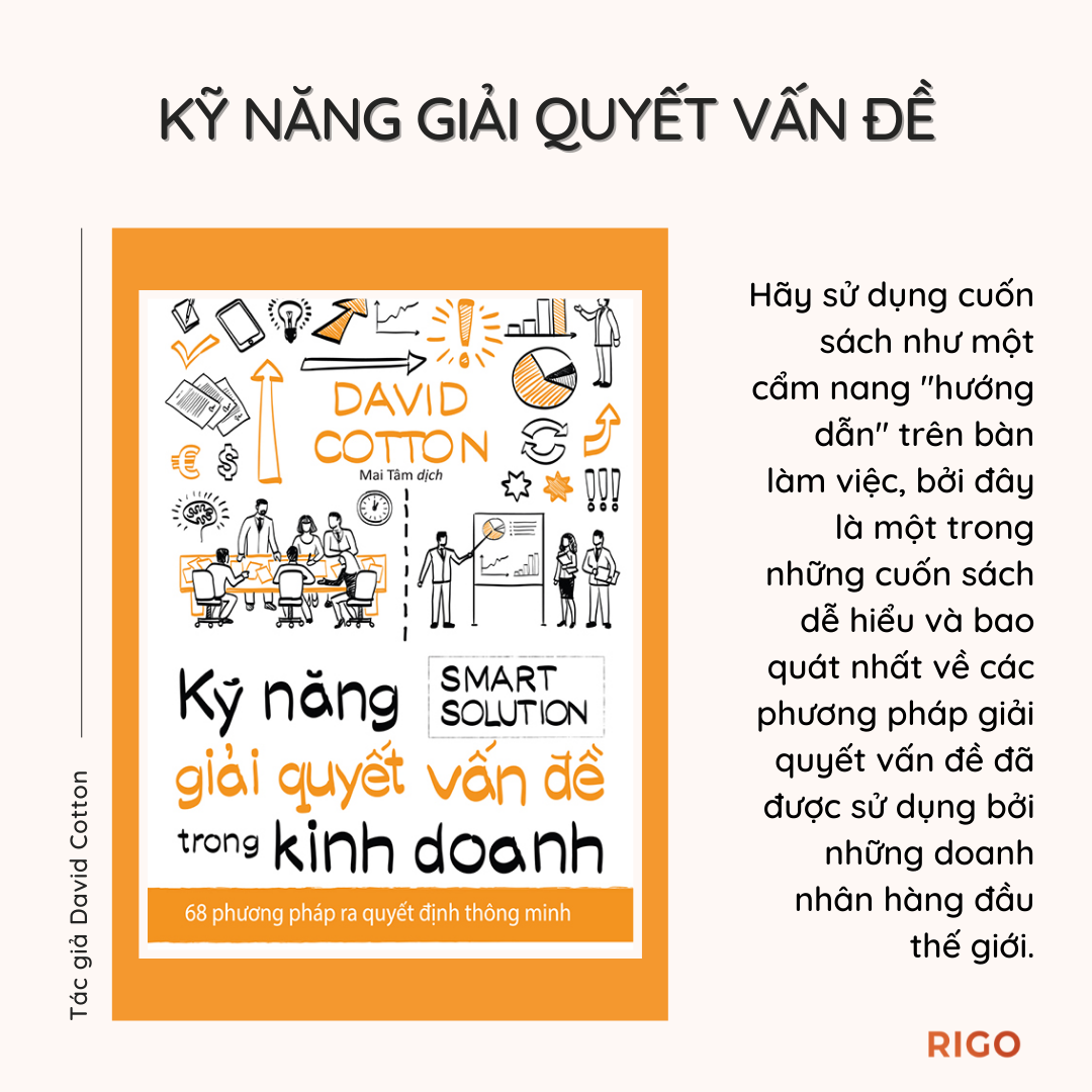 Để thực hiện được cả hai nhiệm vụ: Giúp nhân viên đáp ứng kỳ vọng của lãnh đạo, và giúp các sếp lựa chọn được giải pháp tối ưu, David Cotton đã viết cuốn “Kỹ năng giải quyết vấn đề trong kinh doanh” – tổng hợp 68 công cụ hữu ích nhất để giải quyết toàn diện các vấn đề.
