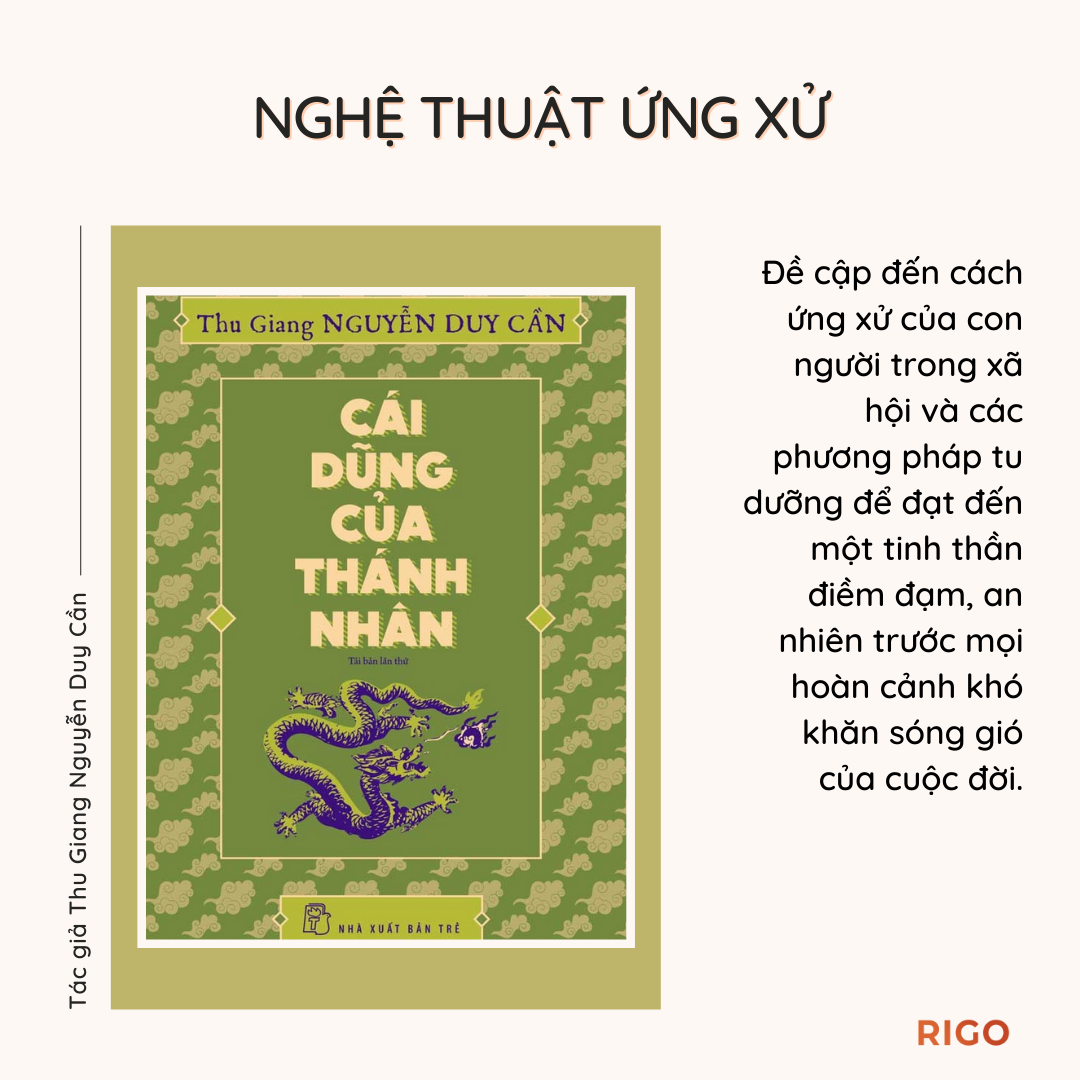 Cái Dũng Của Thánh Nhân của tác giả Thu Giang Nguyễn Duy Cần đề cập đến cách ứng xử của con người trong xã hội và các phương pháp tu dưỡng để đạt đến một tinh thần điềm đạm, an nhiên trước mọi hoàn cảnh khó khăn sóng gió của cuộc đời.