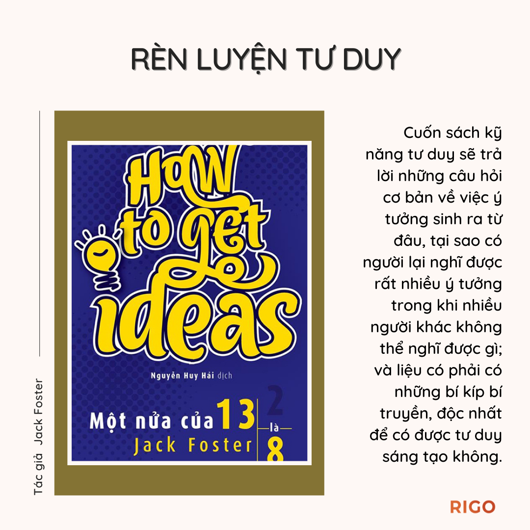 Nhưng làm thế nào để sáng tạo? Bạn sẽ tìm được lời giải đáp trong cuốn sách Một nửa của 13 là 8. Cuốn sách tư duy của Jack Foster là một cuốn sách giúp bạn biết cách tư duy, tạo ra những ý tưởng để có được bước khởi đầu nhanh chóng và đạt được kết quả năng suất hơn trong công việc.