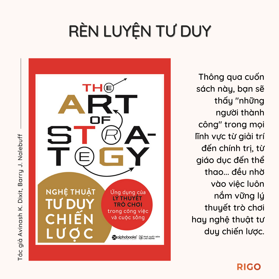 Thông qua Nghệ thuật tư duy chiến lược, bạn sẽ thấy “những người thành công” trong mọi lĩnh vực từ giải trí đến chính trị, từ giáo dục đến thể thao, đạt thành công vang dội là nhờ luôn nắm vững lý thuyết trò chơi hay nghệ thuật tư duy chiến lược, với khả năng dự đoán những động thái tiếp theo của người cùng chơi, trong khi biết rõ rằng đối thủ đang cố gắng làm điều tương tự với mình.