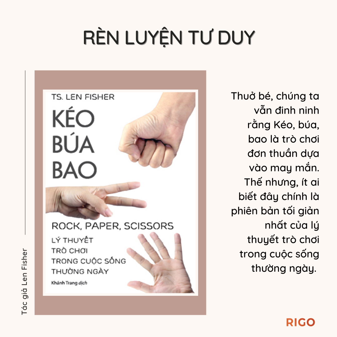 Tiến sĩ Len Fisher, nhà vật lý học đoạt giải Ig Nobel (dành cho những thành tựu khoa học hài hước), đã tiết lộ tất cả những bí mật xung quanh trò chơi Kéo, búa, bao, hiện thân của lí thuyết trò chơi trong quyển sách cùng tên. Ông chứng minh vì sao đôi lúc chúng ta phải chấp nhận thiệt hại để đạt kết quả chung tốt nhất, cùng những cách thức xoay chuyển tình thế sao cho có lợi cho mình. Từ đó, ông đã làm rõ bản chết tưởng như phức tạp của lí thuyết trò chơi, và ứng dụng nó nhẳm giải quyết những tìn huống lưỡng nam mà chúng ta luôn phải đối mặt.