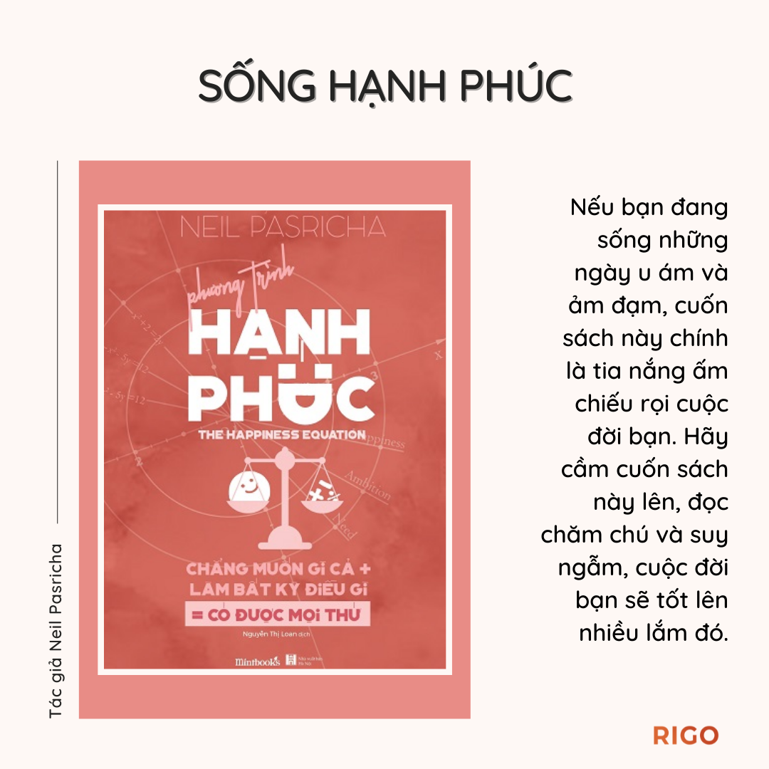 Phương trình hạnh phúc là một cuốn sách sẽ thay đổi cách bạn tư duy về nhiều điều – thời gian, sự nghiệp, những mối quan hệ, gia đình và tất nhiên là cả hạnh phúc của bạn.