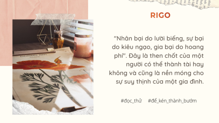 "Nhân bại do lười biếng, sự bại do kiêu ngạo, gia bại do hoang phí". [...]
