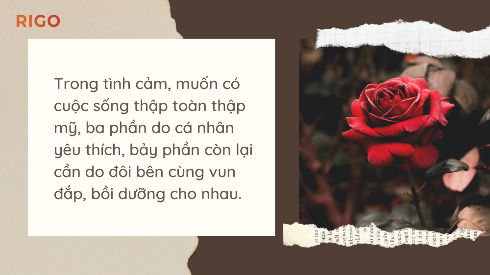 Trong tình cảm, muốn có cuộc sống thập toàn thập mỹ, ba phần do cá nhân yêu thích, bảy phần còn lại cần do đôi bên cùng vun đắp, bồi dưỡng cho nhau.
