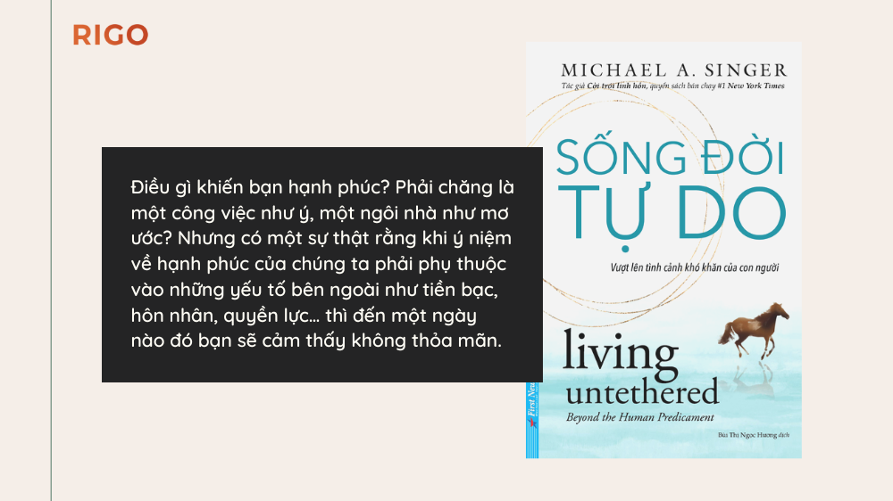 Bằng cách hướng dẫn bạn quan sát và thấy ra Bản ngã sáng suốt – bản thể chân thật của mình, thấy ra nguyên lý vận hành của tâm trí, trái tim và năng lượng nội tại trước những sự kiện xảy ra ở thế giới bên ngoài, Michael Singer chỉ dẫn bạn làm thế nào để giải phóng mọi mô thức tích tụ bên trong để trở về trạng thái tự do tuyệt vời vốn có của nội tâm và tận hưởng từng khoảnh khắc của đời sống diễn ra trước mắt bạn.