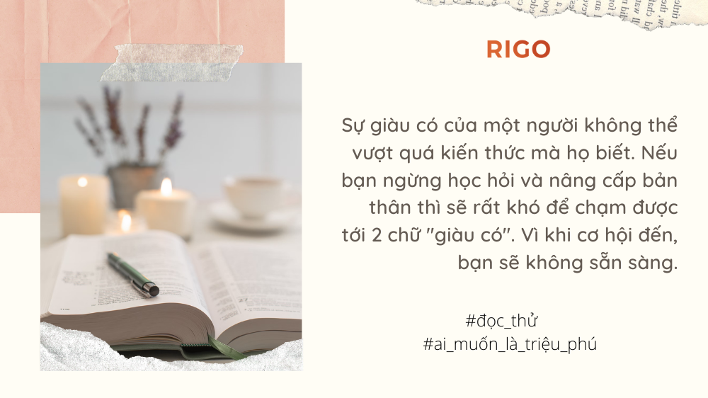 Sự giàu có của một người không thể vượt quá kiến thức mà họ biết. Nếu bạn ngừng học hỏi và nâng cấp bản thân thì sẽ rất khó để chạm được tới 2 chữ “giàu có”. Vì khi cơ hội đến, bạn sẽ không sẵn sàng.