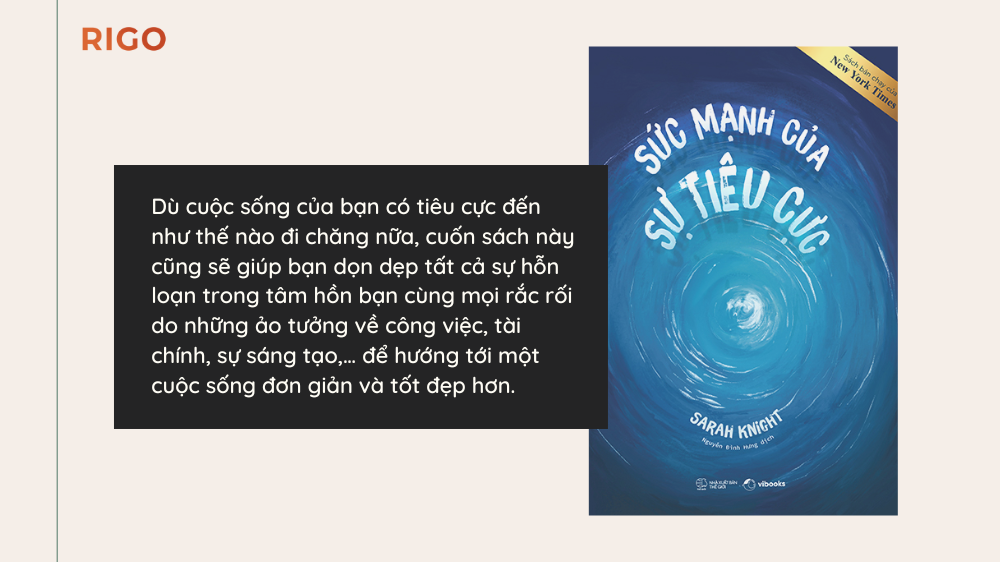 Nếu cuộc sống của bạn đang là một mớ hỗn độn, SỨC MẠNH CỦA SỰ TIÊU CỰC của Sarah Knight sẽ giúp bạn giải quyết chúng. Dù cuộc sống của bạn có tiêu cực đến như thế nào đi chăng nữa, cuốn sách này cũng sẽ giúp bạn dọn dẹp tất cả sự hỗn loạn trong tâm hồn bạn cùng mọi rắc rối do những ảo tưởng về công việc, tài chính, sự sáng tạo, các mối quan hệ, và sức khỏe,… để hướng tới một cuộc sống đơn giản và tốt đẹp hơn.