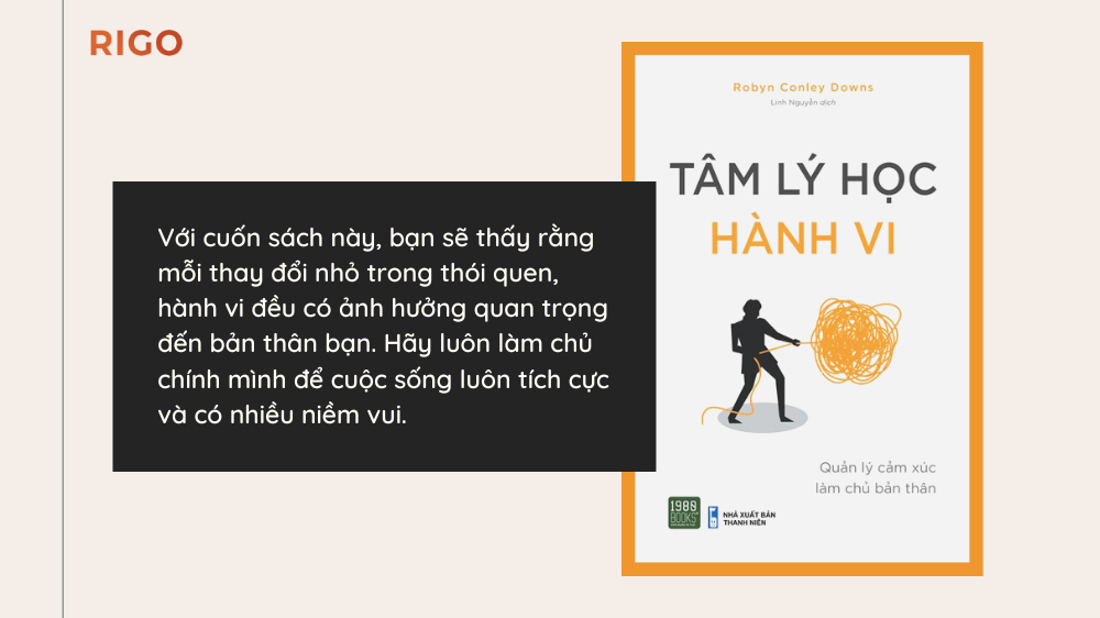 “Tâm lý học hành vi” giống như một liệu pháp tâm lý đối với tất cả chúng ta, khi phải đối mặt với cuộc sống bộn bề, hàng tá công việc phải giải quyết và những nỗi lo lắng, bận tâm không bao giờ chấm dứt. Cuốn sách đã chỉ ra những hành động, những suy nghĩ tiêu cực khiến con người luôn cảm thấy áp lực, nặng nề, để từ đó đưa ra các cách tư duy, phương pháp cụ thể để chúng ta có được sức khỏe, hạnh phúc và trạng thái cân bằng dài lâu trong cuộc sống.