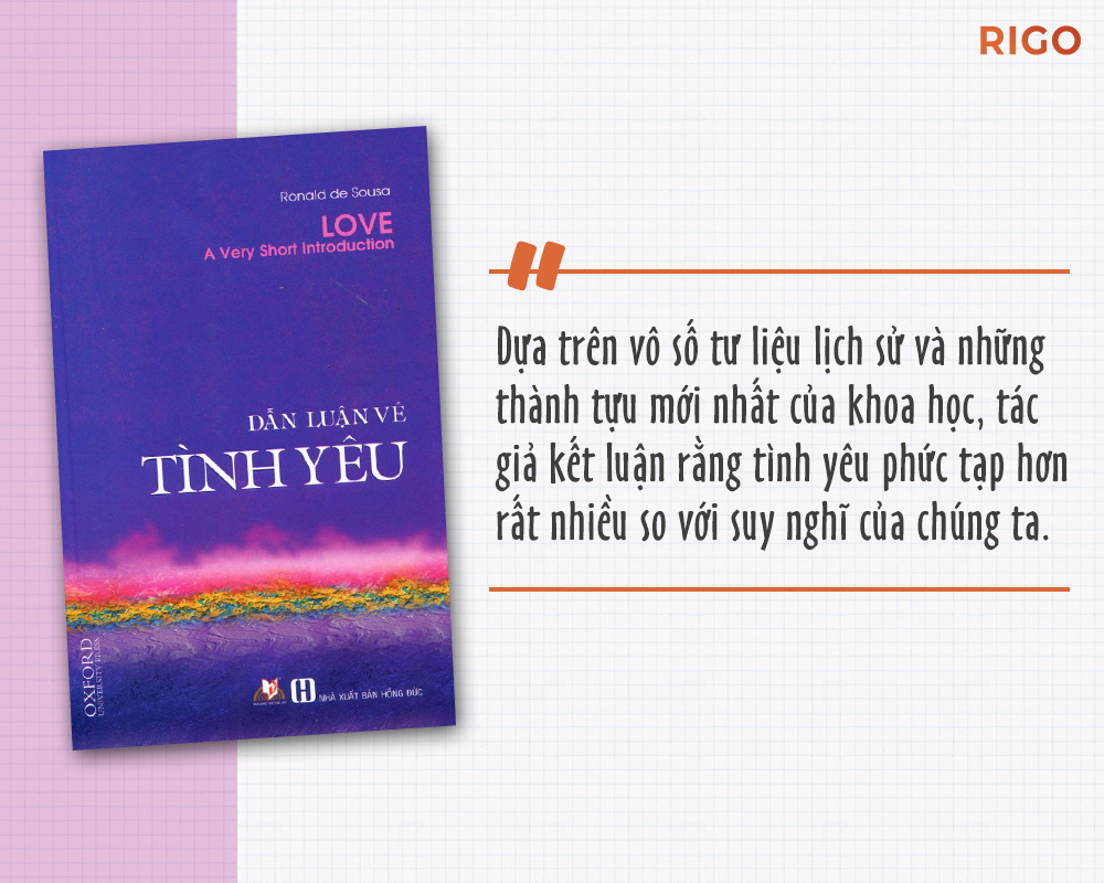 Trong sách Dẫn luận này, Ronald de Sousa khảo sát những tư tưởng triết học về tình yêu. Dựa trên vô số tư liệu lịch sử và những thành tựu mới nhất của khoa học, ông bình luận các quan điểm chính yếu và cho thấy rằng tình yêu phức tạp hơn rất nhiều so với suy nghĩ của chúng ta.