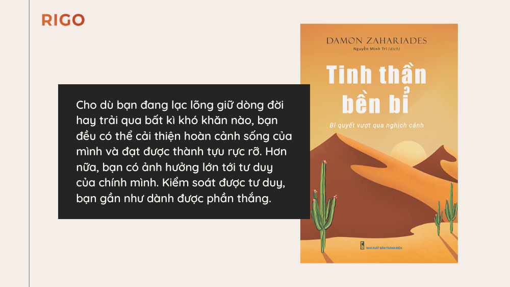 Cuốn sách “Tinh thần bền bỉ” sẽ giúp bạn xây dựng sức bật tinh thần và vượt qua bất kì trở ngại, sự trì trệ hay những điều không may nào mà bạn gặp phải trong cuộc sống.