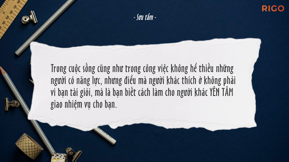 Trong cuộc sống cũng như trong công việc không hề thiếu những người có năng lực, nhưng điều mà người khác thích ở không phải vì bạn tài giỏi, mà là bạn biết cách làm cho người khác yên tâm giao nhiệm vụ cho bạn.
