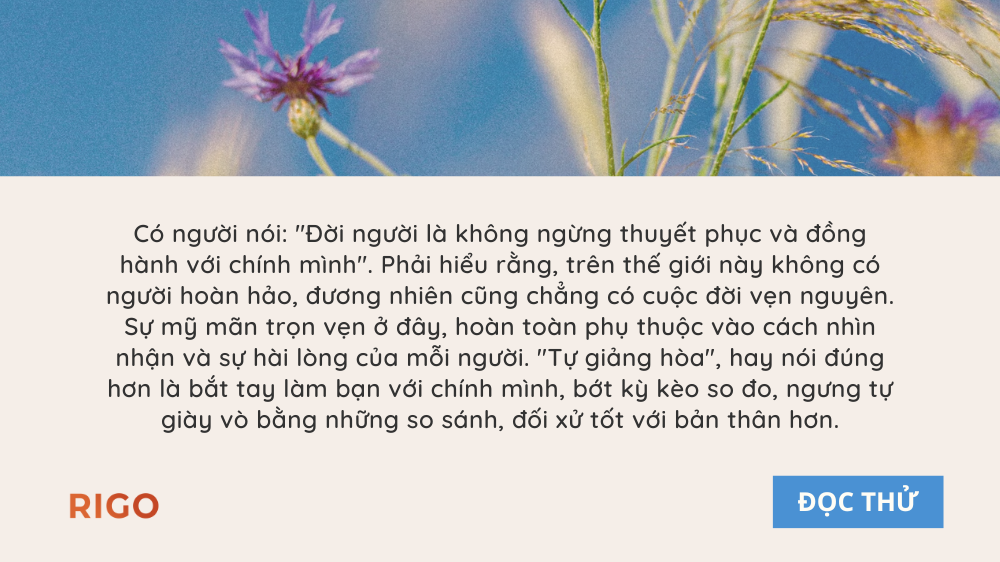 “Tự giảng hòa”, hay nói đúng hơn là bắt tay làm bạn với chính mình, bớt kỳ kèo so đo, ngưng tự giày vò bằng những so sánh, đối xử tốt với bản thân hơn.