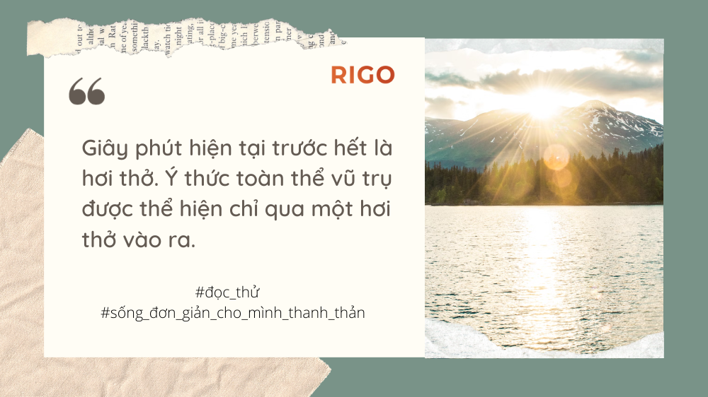 Thân và tâm tôi hợp nhất một cách dễ dàng chỉ với hai dòng chữ đơn giản ấy. Giây phút hiện tại trước hết là hơi thở. Ý thức toàn thể vũ trụ được thể hiện chỉ qua một hơi thở vào ra.
